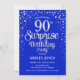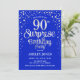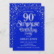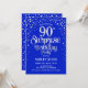 Convite de aniversário de 90 surpresa. Design elegante em azul real e prata brilhante falso. Possui fonte de script na moda e confetti. Envie-me uma mensagem se precisar de idade personalizada.