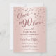 Convite de aniversário Elegante de 90 surpreendido com ouro de rosa brilhante falso. Possui fonte de script e confetti. Saúde para 90 anos! Me mande mensagem se precisar de uma idade personalizada.
