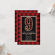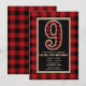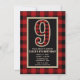 Convites de Festa de Aniversário de 9 Anos em Plaid de Búfalo Vermelho e Preto Rústico.