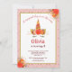 Esta frente deste belo e giro convite apresenta o texto, "Um dia mágico está a caminho" em vermelho na tipografia popular, juntamente com orelhas e olhos de unicórnio de tendência, com um chifre vermelho, laranja e castanho e uma coroa de flores de aquarela pintadas manualmente. O nome personalizável da aniversariante aparece em vermelho, seguido da idade dela e de todos os detalhes da festa, que você também pode personalizar com esta modelo. A frente do cartão é delimitada por uma aresta dourada e um padrão de estrelas sobre fundo cor-de-rosa, juntamente com buquês de flores de cor-de-outono, folhas de outono e estrelas nos cantos. O verso apresenta um padrão de estrelas correspondente em um fundo cor-de-rosa ou rosa dourado. Este convite é perfeito para o outono ou aniversários de Ação de Graças.