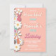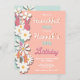 Obtenha rancho com este convite de aniversário hippie de força de flor. Apresenta flores mod, sinal de paz, arco-íris com cores azuis, laranja, amarelas, pinks e brancas em um festival de música dos anos 60 ou 70. Todas as formulações podem ser alteradas para ajustado das suas necessidades. Excelente para qualquer idade.