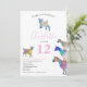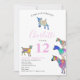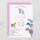 Uma coleção de cabras coloridas e bonitas em rosa vibrante, roxo, azul, laranja, amarela e aqua. Um 12 convite de aniversário de animais de criação bonitinho com cabras e cabras bebês em cabras. Este convite de festas divertido é fácil de personalizar para criar um convite de festas único adequado para crianças e amantes adultos de cabras. Exemplares originais de cabra psicodélica rosa colorida da artista Catherine Sweetman