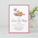 Convite de festa de aniversário simples e elegante Vinho e Queijo ou qualquer ocasião com quadro de queijos pintado à mão com queijo e frutas e taça de vinho.