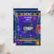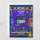 Acelere a diversão na festa de aniversário do seu filho! Nosso convite de aniversário de jogos temático do 'arcade' convida jovens jogadores que adoram videos games antigos a uma celebração poderosa. Alinhe seu dia especial com aventuras épicas e memórias alegres!" Você pode personalizá-lo com seu próprio texto.