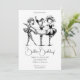 Este design de festa de aniversário de balé apresenta três bailarinas caprichosas ilustradas em preto e branco elegantes, criando um visual atemporal e inspirado em contos de fadas. A delicada linha de trabalho e a tipografia clássica lhe dão uma estética refinada, mas lúdica, perfeita para pequenas dançarinas que amam girar, tutus e celebrações mágicas.