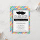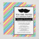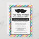 Convites de aniversário de bigode com listras coloridas brilhantes em branco, amarelo, vermelho, azul, verde, rosa e laranja para os hipsteres que sentem mal o coração!