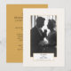 Destaque o casal comemorado com uma foto original do casamento ou uma foto de hoje neste adorável convite de cartão de foto em ouro e branco. Um texto elegante com um fundo sutil de padrão circular apresenta uma foto do casal especial e torna-se uma bela apresentação para a família e convidados. Cada linha de texto é facilmente personalizada para atender perfeitamente às suas necessidades e planos de festa.