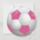 Convide a família e os amigos para uma festa de aniversário de futebol com tema de futebol com este brilhante e divertido convite redondo onde o futebol faz a forma do convite. Esta bola de futebol está em branco e rosa claro com texto personalizável para os detalhes de sua celebração. Perfeito para o fã ou jogador de futebol.
