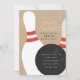 Um convite de aniversário moderno e neutro em termos de gênero, apresentando bola de boliche e 2 pinos de boliche. Convide amigos para celebrar e jogar um divertido jogo de boliche para comemorar o aniversário do seu filho. O fundo com padrão coordenado pode ser removido para dar espaço a informações adicionais da festa, como direções.