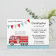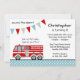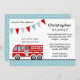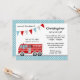 Um belo convite de aniversário de caminhão de bombeiros com um pendant de banner e bolinhas. Perfeito para uma festa temida de bombeiro! Personalize facilmente as informações da sua parte.