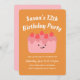 Convite Festa de aniversário de Bolo de Morango Rosa