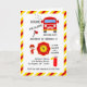 Convite de festa de aniversário de bombeiro com um layout simples em preto e branco personalizável para os detalhes do seu evento. Gráficos por PremiumClipart.