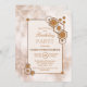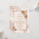 Um convite de aniversário de design geometria hexagonal de ouro enquadrado pela mármore moderna.
