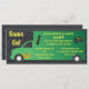 Uma convite de aniversário para uma festa de videogame ou de caminhoneiros de jogos. O design apresenta um caminhão de jogos verdes, controlador de vídeo game, bastão de jogo ou controlador remoto. O fundo é uma cinza e um padrão geométrico preto. O texto diz "Game On!" "Jamison Andrews atingiu o Nível 8". Personalize este convite para a festa de aniversário do seu filho.