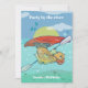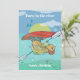 Uma ilustração engraçada do estilo cartoon de um peixe remando um caiaque branco sob água. Um design para qualquer um que adora derrubar rios em caiaques, canoas ou balsas. Um convite de aniversário de caiaque.