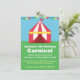 As crianças ficarão entusiasmadas por receber este convite de aniversário brilhante e alegre que tem uma tenda de carnaval vermelha e branca com muitas bandeiras coloridas de bunting por perto. Isso também é perfeito para escolas que estão segurando um carnaval escolar. Personalize facilmente com os detalhes do seu partido.