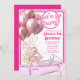 Convite de aniversário rosa de boneca de moda com boneca loira no carro. Este convite de aniversário de bonecas cor-de-rosa funciona para qualquer idade, simplesmente adicione os detalhes do seu evento.