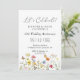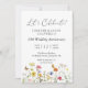 Vamos celebrar seu aniversário de casamento! Flores silvestres coloridas e borboletas criam um design rústico e botânico para os convites da sua festa de aniversário. Flores amarelas, laranja, rosa e azuis dançam na parte inferior. As fontes serifadas e cursivas adicionam a este design clássico e belo. Altere facilmente o ano para refletir o aniversário que você está celebrando.