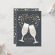 Convite de festa de aniversário com elegância retrô apresenta tipografia dourada "Brindes a 50 anos" e taças de champanhe com bolhas que formam um coração. Mostrado aqui como um convite de aniversário de cinquenta anos, mas você pode personalizá-lo para qualquer número de anos que se aplique à sua ocasião. Brindes a você!