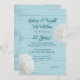Convite de aniversário de casamento com tema de praia com dólares de areia e design de madeira azul. O texto azul-esverdeado escuro é fácil de personalizar sobre um fundo de textura de madeira azul claro. Dois dólares de areia naturais também decoram as bordas do papel. Escolha atualizar com um dos papéis especiais oferecidos.