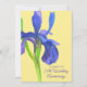 Um convite de festa de aniversário de casamento de 25 anos decorado com uma flor de íris pintada à mão em aquarela em tons elegantes de azul real e roxo sobre um fundo amarelo suave. O íris é uma flor que representa o aniversário de casamento de 25 anos. Na Linguagem das Flores, o íris representa fé, bravura e sabedoria.