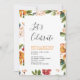 Celebre o seu dia especial com este convite de festa de flores tropicais que apresenta tipografia simples e elegante e padrões florais. Este modelo de design é totalmente personalizável.