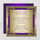 Convite de festa de aniversário de casamento de 50 anos roxo e dourado elegante com redemoinhos. Este lindo convite de festa de aniversário de casamento de 50 anos roxo e dourado é facilmente personalizado adicionando os detalhes do seu evento, estilo de fonte, tamanho e cor da fonte, e texto. Você pode escolher a cor do verso - roxo ou dourado, simplesmente excluindo o que não deseja.