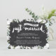 Este convite de aniversário de casamento de 55 anos, elegante e moderno, apresenta uma adorável caligrafia de pincel, lindas flores azuis e brancas, tipografia que diz "Casados (há cinquenta e cinco anos!)", e um fundo rústico de quadro-negro.
