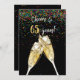 Brinde de champanhe em preto com confetes caindo para o convite da festa de aniversário de casamento de 65 anos.
