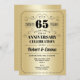 Convite de Aniversário de Casamento de 65 anos. Cartão de convite dourado e preto. Perfeito para uma celebração elegante. Pode ser personalizado para qualquer ano.