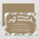 Este convite elegante e moderno para o 70º aniversário de casamento apresenta uma adorável caligrafia de pincel, lindas flores azuis e brancas, tipografia que diz "Casados (setenta anos atrás!)", e um fundo de papel kraft impresso.