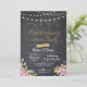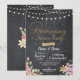 Altere o texto para se adequar ao seu jantar de aniversário de casamento. Este convite rústico de lousa de giz com detalhes dourados é perfeito para um visual romântico e elegante. Impressão na parte de trás incluída