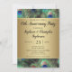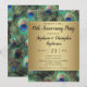 Convite de aniversário de casamento personalizável para qualquer ano... Fundo elegante e refinado de pena de pavão em cores ricas e saturadas de azul real, dourado cobre e verde esmeralda. O pavão é um pássaro majestoso com penas ornamentais e faz uma bela exibição para uma festa de verão ou qualquer ocasião. Gradientes dourados com aparência metálica adicionam um toque de glamour e sofisticação.