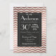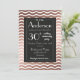 Rosa ouro em padrão geométrico moderno, moldura preta em design simples e elegante em zigue-zague. Convite moderno de festa de aniversário de 30 anos de casamento em ouro rosa.