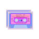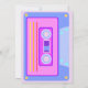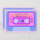 Um design inspirado nos anos 90 com um cassete de áudio em cores vaporwave, com texto para você colocar detalhes para uma festa de aniversário.