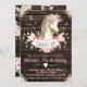 Convite de aniversário de cavalo feminino com bonito cavalo de aquarela numa cor de água rústica floral e fundo de madeira de celeiro. Este convite de aniversário é facilmente personalizado para o seu evento simplesmente adicionando os seus detalhes.