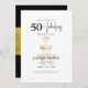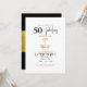 Preto e Dourado 50 e fabuloso Convite de aniversário. Moderno. Champanhe. Dourado e preto para trás.
