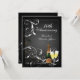 Convite personalizado de aniversário de casamento elegante para 10 anos ou qualquer outro ano. Convites bonitos e festivos apresentam um design preto e branco com um padrão elegante e giratório e duas taças de champanhe espumante com garrafa de champanhe de tonalidade esverdeada para celebrar o grande dia dos convidados de honra. Fundo preto e prateado com espirais pretas e brancas