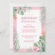 Convite de aniversário de Confetti Floral Cor-de-Rosa para mulheres que amam elegante. Lindas flores e verde fazem fronteira com este moderno convite de aniversário da moda. Use o modelo para adicionar facilmente os detalhes da sua festa.