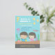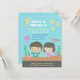 Os seus hóspedes vão ficar entusiasmados por receber este convite bonito e colorido para uma festa de aniversário de aquário! O convite tem um rapaz e uma rapariga que estão a olhar alegremente para os animais subaquáticos do aquário. O grande tanque de aquário está cheio de animais aquáticos, que incluem peixes, águas-vivas, cavalos do mar e estrelas-do-mar cor-de-rosa. O tanque é decorado com recifes de coral e plantas de água. Excelente por debaixo do mar, debaixo d'água e festas de aniversário oceânicas. A fonte usada é como bolhas também! Convite neutro de gênero, que é excelente para aniversários de meninos e meninas! Personalize facilmente com os detalhes do seu partido.