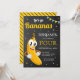 Incomode seus convidados com este convite de aniversário temático único apresentando uma banana sorridente com tipografia moderna contra um fundo de quadro. Basta adicionar os detalhes do seu evento neste modelo fácil de usar para torná-lo um convite de tipo único. Sacudir a placa para revelar um padrão de listras elegante na parte traseira da placa.