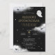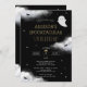 Diversão e Convite de aniversário de Halloween para Crianças Bonitas, com fantasmas, morcegos em um fundo preto assustador e turvo. Use as ferramentas de design para personalizar o texto, as fontes, a cor e os gráficos. Também disponível como download digital.
