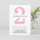 Convite de aniversário chic com um grande número cor-de-rosa e um dorso com faixas diagonais em rosa e preto.