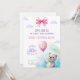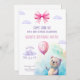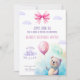 Celebre uma ocasião especial de urso com este adorável Convite de festas Aniversário de criança! Apresentando um urso bonito segurando um balão, nuvens pastéis, um grande arco rosa, e um design de aquarela, este convite é perfeito para uma celebração de aniversário divertida e caprichosa. Ideal para uma festa infantil com um tema lúdico e acolhedor, traz alegria a qualquer dia especial.