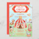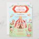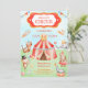 Um circo e um carnaval temem o Convite de aniversário do garoto. O design apresenta bunting multicolor, balões, panos de festas, grilhões e uma tenda vermelha de circo cercada por animais de circo, incluindo um tigre, elefante, urso, coelho, leão-marinho e macaco. O nome do seu filho circo é exibido em uma faixa vermelha cercada por luzes.