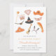 Um convite de aniversário de criança com ilustrações de roupas para cima.