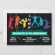 Um convite de aniversário divertido para meninos ou meninas em um Centro de Trampolim, Casa de Saltos, Festa de Castelo de Saltos. Com crianças saltando e uma faixa para inserir o nome e a idade da criança.