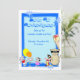 Diversão do convite de aniversário infantil com personagens engraçadas de animais de desenho animado, e balões sobre fundo azul. Adicione facilmente seu próprio texto ( Personalizar para ajustar o tamanho/cor/fonte do texto) Você pode adicionar mais detalhes no verso ou adicionar uma foto.