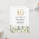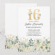 Defina o tom para uma celebração marcante com nossos convites de aniversário de 16 anos. Com folhagem verde rústica, flores elegantes em aquarela branca e detalhes em dourado. Combinados com um modelo de texto de celebração de aniversário de dezesseis anos que você pode personalizar, esses convites são uma mistura perfeita de elegância e charme. Prepare-se para a melhor festa de aniversário de sweet sixteen!