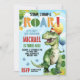 Convite de aniversário de Dinossauro Três-Rex - Este mote tremendo convite de aniversário totalmente "rugido" tem sido mais de um milhão de anos no fazer. Apresentando um forte dinossauro t-Rex pronto para festa, cercado por plantas e balões pré-históricos. Não seja um "rex nervoso" e deixe seus planos do partido se extinguirem. Vamos ajudar a sua extravagância de aniversário do dinossauro a ser um enorme sucesso "rude".